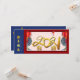 Chinese pattern in blue tone on both opposite sides with red lanterns, pale pink Chinese ideograms as background, large golden 2021 + two small Ox golden paper-cut (image printed) + wishes in Chinese and English. Design on rectangular flat card with large ox and other message with Family name to customise in back of the card. Matching greeting card, postcard and other flat cards.