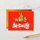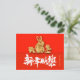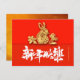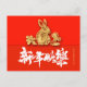 Large wishes "Happy New Year" in Chinese (white modern calligraphy) and in English, Rabbit golden paper-cut (image printed). Design on horizontal postcard with red background + golden textured paper (image printed) inside. You can easily change background colour by clicking the customise button. Matching greeting card, sticker and more... Available with other Rabbit paper-cuts. Perfect for Chinese Rabbit New Year 2023.