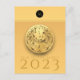Elegant design with golden round paper-cut of a Rabbit (model n°1). Design on vertical holiday postcard with Large 2023, Year of the Rabbit and monogram onto black round + same background image inside the card. You can easily change text (font, colour, size and position) by clicking the customise button. Perfect for Chinese Rabbit New Year or birthday (people born in Rabbit Year).