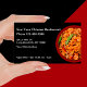 Chinese restaurant simple business card template with a prepared dish image in the background and simple layout you can customise online. Designed for a take out, dine in, or buffet restaurant style.