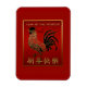 Chinese New year 2017 flexi magnet = Design of Rooster in black and gold on red "silk" background with a simple golden frame. Golden lettering with shadow (not customisable) in English and greeting in Chinese "Happy New Year" and metal red symbol of Rooster. Matching Chinese New Year greeting card, postcard, postage, sticker and more. Don't forget the whole collection. -------- "The Rooster (simplified Chinese: 鸡; traditional Chinese: 雞/鷄) is one of the 12-year cycle of animals which appear in the Chinese zodiac related to the Chinese calendar. The Year of the Rooster is represented by the Earthly Branch character 酉. The name is also translated into English as Chicken. Rooster is the only bird included in the Chinese zodiac." Wikipedia