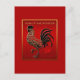 Chinese New year 2017 postcard = Digital embossed and enamelled effect for this design of Rooster in black and gold on red "silk" background with a simple golden frame. Golden lettering with shadow (not customisable) and metal red symbol of Rooster. Postcard for Chinese New Year 2017 or birthday. Matching Chinese New Year greeting card. Don't forget the whole collection. ------------- "People born within these date ranges can be said to have been born in the "Year of the Rooster", while also bearing the following elemental sign: 26 January 1933 - 13 February 1934 Water Rooster, 13 February 1945 - 1 February 1946 Wood Rooster, 31 January 1957 - 17 February 1958 Fire Rooster, 17 February 1969 - 5 February 1970 Earth Rooster, 5 February 1981 - 24 January 1982 Metal Rooster, 23 January 1993 - 9 February 1994 Water Rooster, 9 February 2005 - 28 January 2006 Wood Rooster, 28 January 2017 - 16 February 2018 Fire Rooster." Wikipedia