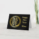 Wish family and friends a Happy Chinese New Year for the beginning of the Year of the Dragon with this card featuring a golden coloured Chinese symbol (or Japanese kanji) for dragon surrounded by an ornate golden frame on a black background. All the text is fully customisable for your own special New Year message.