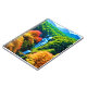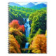 A serene Chinese waterfall nestled amidst beautiful nature, surrounded by colourful trees and mountains.