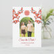 Red oriental blossoms and a red double happiness symbol on a white background. Save the date text in an elegant font. Customize it with your photo. Matching Chinese wedding products available.