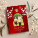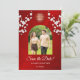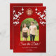 White cherry blossoms and a gold double happiness symbol on a shimmering red floral background. Save the date text in an elegant font. Customize it with your photo. Matching Chinese wedding products available.
