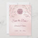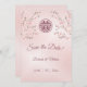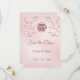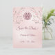 Dusty pink cherry blossoms and a dusty rose double happiness symbol on a shimmering blush pink background. Save the date text in an elegant script. Matching Chinese wedding products available.