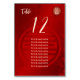 This Chinese wedding seating chart table number cards feature a gold double happiness symbol on a shimmering ruby red background. With text boxes to add a list of guest names.