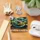 Cute baby snake in cartoon style into a forest (by AI) + Happy New Year in English into faux-bois background (for the wood element of the year 2025). Design on basic square keychain. Matching greeting card and holiday postcard. Perfect for Chinese New Year of the Snake 2025 or Birthday (people born in Snake Year).