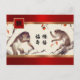 Happy Chinese New Year. Festive Red Gold Foil design Chinese Year of the Monkey Postcards in Chinese with traditional Asian painting of the monkey. Chinese characters on front of the card are a Monkey Sign in the Chinese Zodiac and one of the most common contemporary greeting for Chinese New Year literary translated as "a Happy New Year". Matching cards, traditional Chinese red envelopes and gifts available in the Chinese New Year / Year of the Monkey Category of our store.