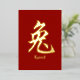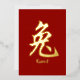 Celebrate people born in the Year of the Rabbit. This elegant gold foil card has a simple design of the calligraphy character for rabbit, with small text in English. You can click to edit the design and add a personalised message.