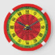 Wheel depicting the Chinese zodiac signs and the years they pertain to, in colours of red, green and yellow