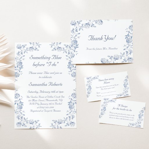 Chinoiserie Floral Something Blue Bridal Shower Invitation