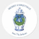 Add a touch of elegance to your holiday gifting with these Chinoiserie Ginger Jar Stickers. Featuring a blue and white ginger jar decorated with a greenery wreath and blue bow, this design brings classic charm with a luxe, preppy twist. Personalise with your own greeting—such as “Merry Christmas”—along with your name for a thoughtful finishing touch. Perfect for sealing envelopes, decorating party favours, or attaching to holiday gifts, these stickers make even the smallest details feel festive and grand.