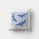 Porcelain blue and white koi fish on swirling blue background are featured on this beachy blue and white pillow.