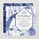 White Hexagonal text frame outlined in navy blue in a Square format. Stylised peacock birds with vintage Chinese style butterflies, willow trees and Chinoiserie foliage leaves. Reverse side has the full image and a navy blue background for contrast. Ideal for a wedding in any season, design created by artist, Audrey Jeanne Roberts. Copyright. Hand painted watercolor Blue Asian Influence Floral Chinoiserie design has a complete collection available here (copy and paste link into browser): https://bit.ly/2DS0gN6