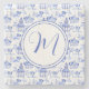 Chinoiserie Watercolor Pagoda Pattern Monogram Stone Coaster