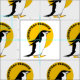 A cute black and white illustration of a Chinstrap penguin walking in front of the yellow sun. A design for penguin lovers. These birds are found in the pacific and Antarctic oceans.