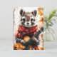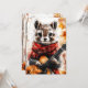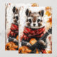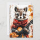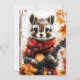 A chipmunk in a red scarf plays a guitar among autumn leaves. Cosy forest vibes meet fun animal charm.