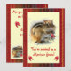 This cute little chipmunk is extending an invitation to a Mexican fiesta. He is an adorable little creature with reddish brown fur and and a brown and white stripe down his back. He is stuffing his cheeks with chilli peppers! He is also on the back with more hot chilis. All text can be personalised for your own party!