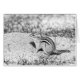 A black and white sketch featuring a close up photograph of a chipmunk on a the ground. This is one of the chipmunks who lives at a campground in Ticonderoga, NY. This image was taken by Debbie Quick of Debs Creative Images. To see more photographs by Debbie, check out her website at: www.debscreativeimages.com