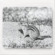 A black and white sketch featuring a close up photograph of a chipmunk on a the ground. This is one of the chipmunks who lives at a campground in Ticonderoga, NY. This image was taken by Debbie Quick of Debs Creative Images. To see more photographs by Debbie, check out her website at: www.debscreativeimages.com