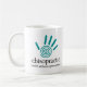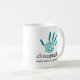 This chiropractic mug features a teal spiral hand print and text that says "Chiropractic - Health Without A Prescription."