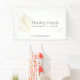 An abstract depiction of a spine with radiating circles is offset next to your name or business name on this chiropractor's or massage therapist's banner design. Great to use as in-office signage, events, trade shows, conventions and more. Art and design © 1201AM Design Studio