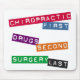This design features colourful punch label look text that says "Chiropractic First, Drugs Second, Surgery Last."