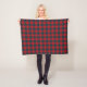 Fleece blanket with the Clan Chisholm tartan, a traditional Scottish plaid pattern dated to 1842 in bright red, royal blue, and forest green with creamy white accents. Available in three sizes.