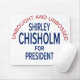 This reproduction is based on a 1972 campaign button for Shirley Chisholm, the first African-American woman to run for president.