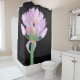 The simple yet dramatic image on this Shower Curtain is an original photograph by ZoeSPEAK of a flowering chives plant. The closeup photo features one pale lavender flower atop a light bluish green tubular stem. The dark background shows off the beauty of this delicious herb.