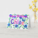 A pretty floral birthday card for anyone called Chloe. The letters of the name and the sprinkling of flowers and leaves are made from handpainted paper collage on a white background. Blank inside for your own message. See also matching mug.