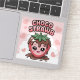 A new cutey cartoon character design. A superbly kawaii strawberry character is designed covered in melty dripping chocolate from the top, with some cute pinky hearts at the background. A nice typography featuring the phrase "CHOCO STRAWB" is added in a perfect font and style.