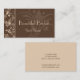 This business card design is sure to attract attention and help you stand out in the crowd. The background is chocolate brown and there is a beautiful floral graphic in champange cream giving it an elegant look. Perfect for any business but especially great for bridal salon, wedding planning, event planning, catering, nail salon, spa, jewellery, cosmetologist, fashion, beauty consultant, or any time you would like an elegant touch. Add your information and it is ready to go!