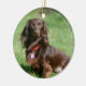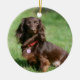 Chocolate and Tan Long-haired Miniature Dachshund Ceramic Ornament