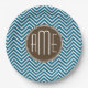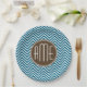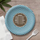 Chocolate and Teal Chevron Pattern with Monogram Paper Plate