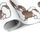 Destei's original cartoon illustration of a cute chocolate and white coat colour Bichon Havanais / Havanese breed dog as a pattern.