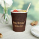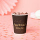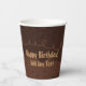 Decadent, chocolate birthday cake frosting decorated with sprinkles and whipped caramel topping! Shown here on a paper party cup. Personalise with any text and change the Happy Birthday message if desired. It's a delicious design for chocolate cake lovers! Find more party supplies with this design in my store Paper Crow.