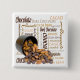 Affix it to a purse, backpack, or clothes. This pullback button is adorned with the words chocolate, almonds, and dark chocolate text in English, French, and German in a variety of typeface styles, colours, and sizes behind a close-up photograph of chocolate bits and almonds spilling from a black ramekin. Click customise to select a background colour other than white.