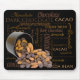 Make a happy work environment when you add this sweet tooth mouse pad adorned with the words chocolate, almonds and dark chocolate text in English, French and German in a variety of font styles, sizes and colours as background for a close up photograph of chocolate bits and almonds spilling from a black ramekin. Click the orange Customise it! button to select a background colour other than black when you click Edit then Background.  I like it with a white background too. Nice gift idea for a special someone in your life?