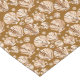 Table runner in a pattern of chocolate brown, tan and creamy white semi-abstract sea shells on a milk chocolate brown background
