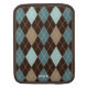 Chocolate Brown and Blue Argyle Pattern Monogram iPad Sleeve