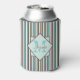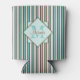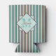 Chocolate Brown & Mint Green Stripes Monogram Can Cooler