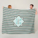 Chocolate Brown & Mint Green Stripes Monogram Fleece Blanket