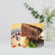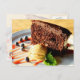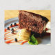 Chocolate cake with caramel ice cream postcard