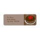 Address labels featuring a chocolate cake with bright red strawberries on a "cafe au lait" toned background. The text area is customisable.