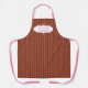 Striped catering business apron in shades of chocolate brown, pink, and white with a decorative area for your name and job role. Currently reads Chocolatier Belinda. Ideal for businesses that bake or make chocolates, sweet treats, and candy. Other matching items are available. Original graphic art and design by www.mylittleeden.com