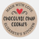 A personalised rustic "made with love" sticker on a kraft coloured background. To decorate your gift of chocolate chip cookies. Make it yours by adding your own name. A pretty finishing touch for your chocolate chip cookie gift. Designed for you by Blackberry Boulevard.