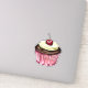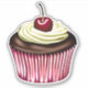 Sticker in a detailed illustration of a chocolate cupcake with chocolate frosting, a swirl of whipped cream, and a cherry on top - hungry yet?